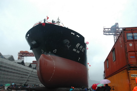 2009年5月26日上午,我司新建造的29800噸級(jí)散貨船下水慶典儀式在浙江振興船舶修造有限公司隆重舉行。我公司董事長(zhǎng)管雄文、總經(jīng)理董軍、副總經(jīng)理夏海國(guó)、蔣海良、黃敏輝、集團(tuán)公司有關(guān)領(lǐng)導(dǎo)、公司職能部門負(fù)責(zé)人以及造船廠領(lǐng)導(dǎo)出席了慶典儀式。