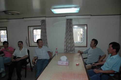 董總一行與船上同志進(jìn)行了座談,詳細(xì)了解了船舶、船員生產(chǎn)生活情況,以及學(xué)習(xí)實踐科學(xué)發(fā)展觀和“安全生產(chǎn)月”活動的開展情況,簡要介紹了上半年公司經(jīng)營狀況和安全形勢,分析了當(dāng)前經(jīng)濟(jì)形勢,尤其是航運(yùn)業(yè)發(fā)展環(huán)境。董總要求大家:一要堅定信心、攻難克堅、共度難關(guān);二要加大自修保養(yǎng)力度、合理配積載、采用經(jīng)濟(jì)航速,想方設(shè)法開源節(jié)支;三要根據(jù)季節(jié)特點,船岸互動,扎實做好安全工作;四要以科學(xué)發(fā)展觀為指導(dǎo),抓好船舶基礎(chǔ)管理,進(jìn)一步提升企業(yè)形象。最后,董總叮囑船上同志,要注意做好防暑降溫工作,合理安排工作休息時間,注意安全,注意身體。