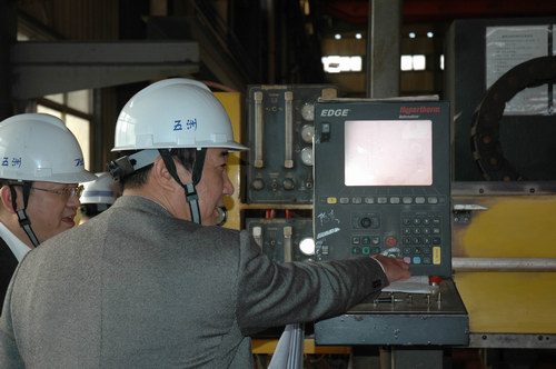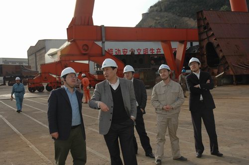 2010年3月17日下午,董事長管雄文、總經(jīng)理董軍、副總經(jīng)理蔣海良及有關(guān)部門負(fù)責(zé)人參加了在舟山五洲船舶修造有限公司建造的57500噸級散貨船開工儀式。期間,管董事長一行還與船廠領(lǐng)導(dǎo)進(jìn)行了座談交流,并實(shí)地考察船廠生產(chǎn)經(jīng)營情況。