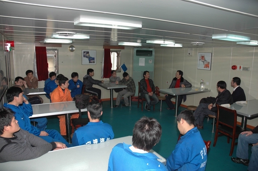 在船上,董總在船長和輪機(jī)長的陪同下先后檢查了主甲板、駕駛臺和機(jī)艙等場所,詳細(xì)了解了“明州67”輪營運(yùn)半年多來的安全、生產(chǎn)、管理及船員的生活情況,問寒問暖,與大家親切交談,并介紹了公司2010年的主要工作情況,分析了公司2011年面臨的機(jī)遇與挑戰(zhàn),以及“十二五”期間公司發(fā)展設(shè)想。通過董總的介紹,船員們看到了公司良好的發(fā)展前景,大家非常振奮。