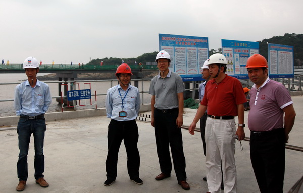 董總一行與臺(tái)二電相關(guān)領(lǐng)導(dǎo)一同到正在建設(shè)中電廠碼頭現(xiàn)場(chǎng)進(jìn)行實(shí)地考察。