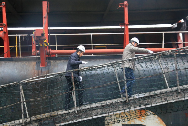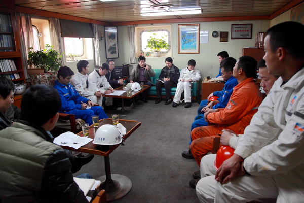 上船后,海運集團總經(jīng)理、公司董事長褚敏等在船舶主要領導的陪同下先后到駕駛臺、餐廳、機艙等進行的檢查,詳細詢問了船舶基礎管理、公司規(guī)章執(zhí)行和船員伙食管理等情況,并與船上陪同人員就如何抓好船舶安全管理工作進行了交流,對提出的意見和建議,褚董事長現(xiàn)場作了安排,要求相關部門認真調查研究,妥善加以解決。