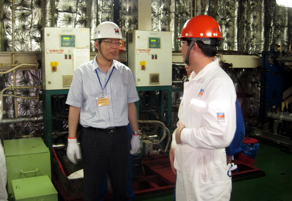2015年6月4日,總經(jīng)理董軍帶領(lǐng)公司安全檢查小組對??吭诒眮鲭姀S的“明州78”輪進行季度安全檢查。