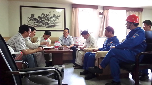 現(xiàn)場檢查結(jié)束后,董總組織船上人員召開了座談會,聽取了船舶主要領(lǐng)導(dǎo)關(guān)于“明州78”輪安全生產(chǎn)工作實施匯報,檢查組人員反饋了檢查中發(fā)現(xiàn)的問題和整改要求。董總向船上同志簡要介紹了公司1?5月份的生產(chǎn)經(jīng)營情況,分析了當前航運市場形勢。董總強調(diào),近期國內(nèi)發(fā)生了重大安全事故,造成了重大人員傷亡和財產(chǎn)損失,全司船舶必須深刻吸取“東方之星”客輪在長江傾覆的慘痛教訓(xùn),強化責任意識,深刻剖析、認真反思當前安全管理中存在的問題和不足,采取積極有效措施,維護公司安全穩(wěn)定局面。
