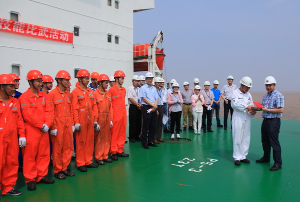 2015年7月15日,公司在靠泊于嘉興電廠碼頭的“明州57”輪舉行2015年度船員崗位技能比武活動決賽啟動儀式。公司總經(jīng)理董軍出席活動并宣布活動正式啟動,海運(yùn)集團(tuán)黨委委員、總會計(jì)師彭法、公司副總經(jīng)理鄔雅淑和“明州57”輪全體船員和各部門代表共40余人出席了啟動儀式。副總經(jīng)理黃敏輝主持了本次啟動儀式。