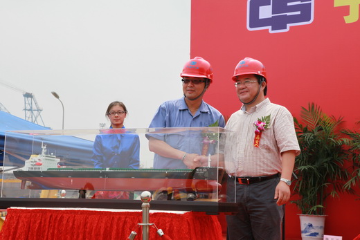 2012年8月10日上午,公司新建造的第3艘47500噸散貨船命名交接船儀式在中海工業(yè)(江蘇)有限公司碼頭隆重舉行。董事長褚敏、總經(jīng)理董軍、副總經(jīng)理蔣海良、傅維欽,以及公司相關職能部門領導參加了命名交接船儀式。