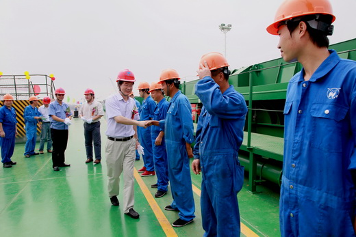 命名交接船儀式結束后,公司領導還登輪慰問船員并參觀檢查船舶。