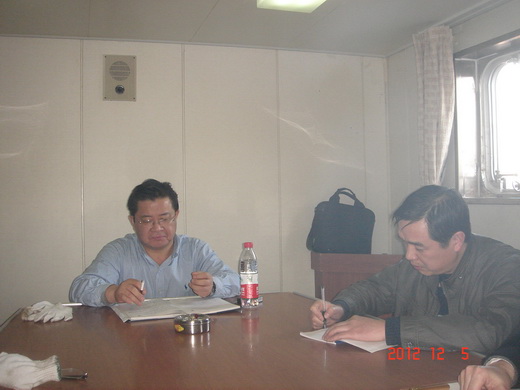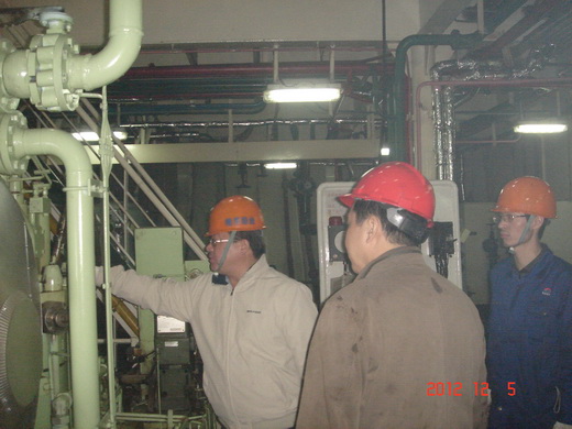 2012年12月5日,蔣海良副總經(jīng)理率相關(guān)職能部門負(fù)責(zé)人趕赴正在舟山隆昇船業(yè)有限公司進(jìn)行技改修理的“明州62輪”檢查指導(dǎo)工作。